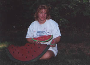 watermelon wedges for family gifts. Kristine took the log brand and log